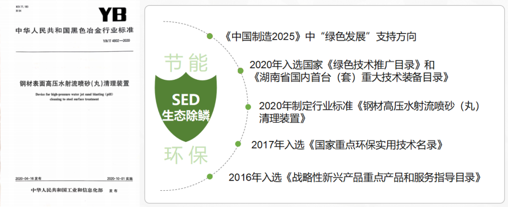 钢带无酸清理技术;SED生态除鳞设备与工程:板材清理设备、棒材清理设备、线材清理设备、管材清理设备、钎杆清理设备、复杂零部件清理设备、手持喷枪式高压水射流喷砂(丸)清理设备及专用清理设备的研发、制造和销售。