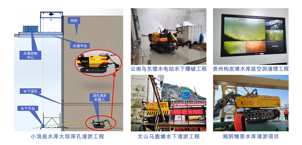 主要应用场景:水库大坝孔洞淤积清理;市政管涵清淤;深水淤积物清理;水下特殊作业及监测。